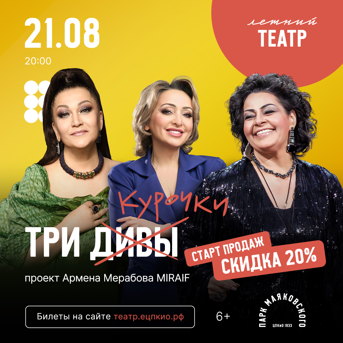 🔗 Билеты на концерт уже в продаже. И небольшой бонус для тех, кто планирует летние впечатления заранее: используйте промокод КУРОЧКИ20 на сайте Летнего театра, чтобы получить скидку 20%.